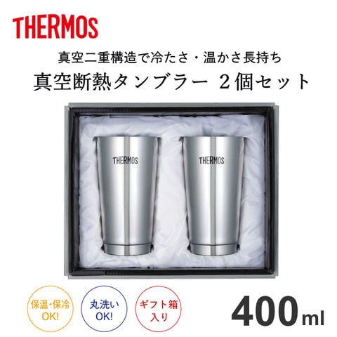 品番:H01-1-80-JMO-GP2-gift※品名:タンブラー ペア ギフト 2個 セット サーモス THERMOS 400 ml ギフト箱入り 保温 保冷 真空断熱タンブラー ビールグラス ビアカップ お揃いタンブラー 結婚祝い 結婚記念日 ペアセット プレゼント 結婚祝い JMO-GP2