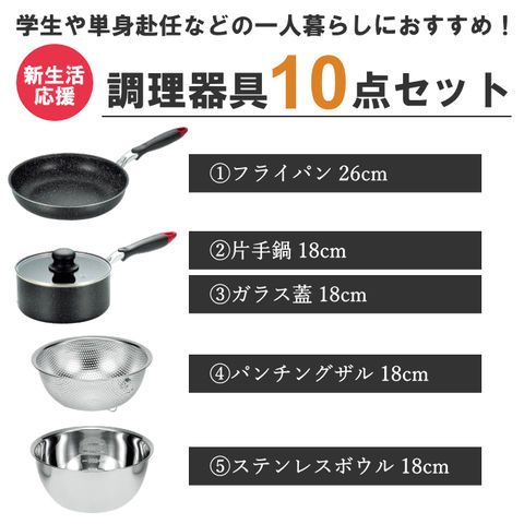 一人暮らし 調理器具 調理道具 セット キッチンセット 単身赴任 新生活 引っ越し おすすめ 鍋 フライパン IH 対応 包丁 まな板 お玉 ターナー キッチンバサミ ボウル ザル ステンレス 菜箸 ピーラー 計量カップ 計量スプーン ギフト プレゼント KC-10SET 日本製 フライパンセット 26cm ガス火 深型 炒め鍋 マーブルコート 片手鍋 18cm なべ ナベ 蓋付き ガラス蓋付き 目盛付き パンチング ボール おたま オタマ ヘラ フライ返し 包丁セット 三徳包丁 万能包丁 キッチンはさみ キッチン はさみ ハサミ キッチン用品 ツールセット 調理 料理 キッチン ツール 道具 器具 パール金属 一人暮らしセット 新生活応援