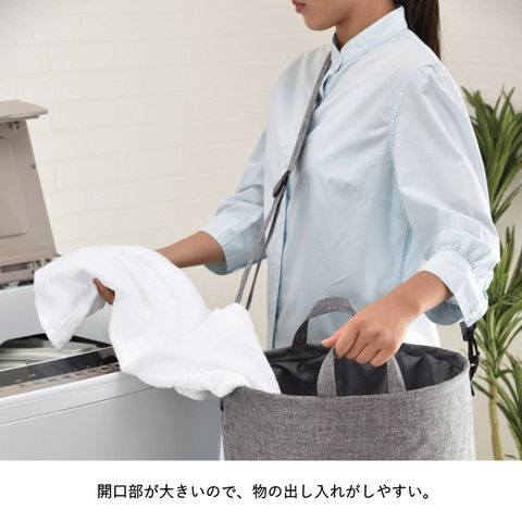 | たっぷり容量と、ショルダー付きでマルチに使えるランドリーバッグ。 ランドリー以外にも、リビングやキッチン、アウトドア等、様々なシーンで活躍。 |