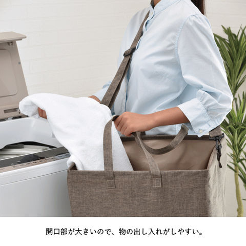 | たっぷり容量と、ショルダー付きでマルチに使えるランドリーバッグ。 ランドリー以外にも、リビングやキッチン、アウトドア等、様々なシーンで活躍。 |