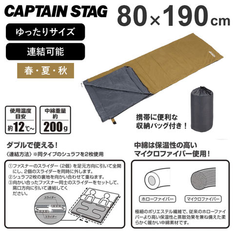 品番:P01-1-80-UB-0037※品名:シュラフ 寝袋 封筒型 撥水 封筒型寝袋 ワイド マット ブランケット 連結 1人用 2人用 シュラフカバー 軽量 コンパクト 夏用 春用 秋用 キャプテンスタッグ ソロキャンプ アウトドア キャンプ 海水浴 登山 UB-0037