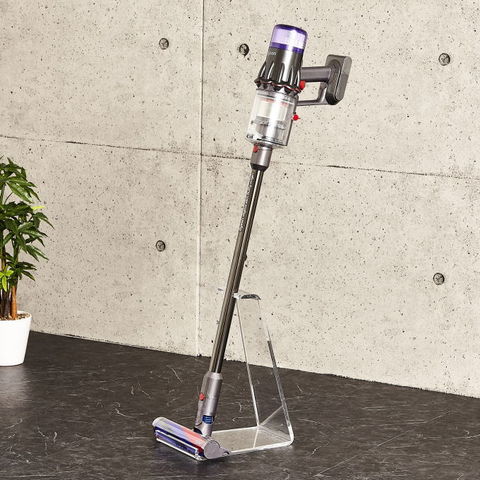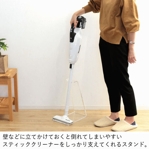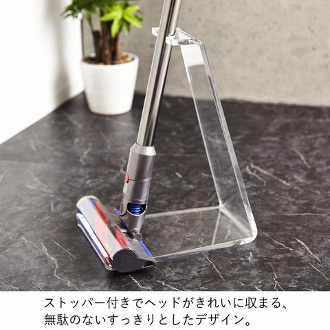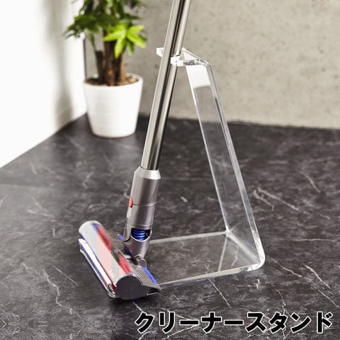 | スティックタイプの掃除機をすっきり立てて収納でき、使いたいときにサッと取り出せて便利。 透明のアクリル素材ですので圧迫感がなく、場所を選ばず設置できます。 |
