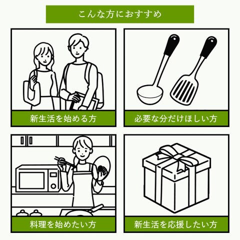 | 選べる キッチンツール セット 調理器具 福袋 日本製 お得 お試し ナイロン キッチンセット 調理道具 食洗機対応 一人暮らし お玉 ターナー フライ返し トング ヘラ 便利 ひとり暮らし 初心者 新社会人 大学生 新生活 軽量 軽い ふた 蓋付き 卓上 コンパクト シンプル キッチン雑貨 キッチン小物 キッチングッズ 単身赴任 引っ越し おしゃれ ギフト 贈り物 プレゼント キッチン ツール おしゃれ 調理 料理 アルティス ホームシェフ KT-3点-select |