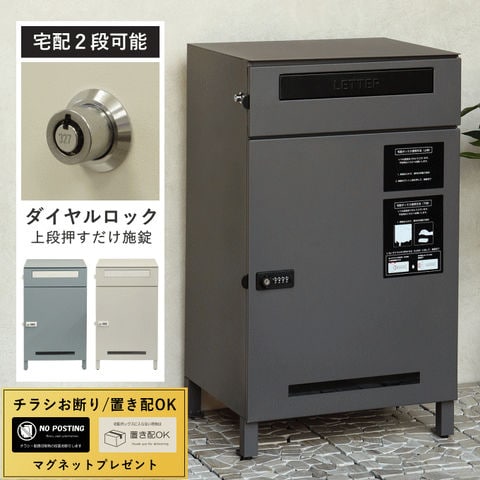 品番:M02-1-180-PBX-040※品名:宅配ボックス 一戸建て用 ポスト 一体型 置き型 スタンドタイプ 大型 大容量 ポスト一体型 郵便ポスト 家庭用 おしゃれ ゼロリターンキー 郵便受け ダイヤル錠 置き配 ボックス 置き型ポスト ポスト 自宅用 戸建て 宅配ロッカー