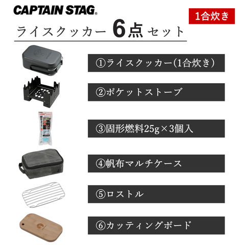 品番:P01-1-80-UH-4126-6P※品名:ライスクッカー 6点 セット ブラック メスティン クッカーセット 1合炊き クッカー 飯盒 炊飯 クライム ストーブ 固形燃料 収納ケース コンパクト ソロ キャンプ めし カッティングボード ロストル アウトドア