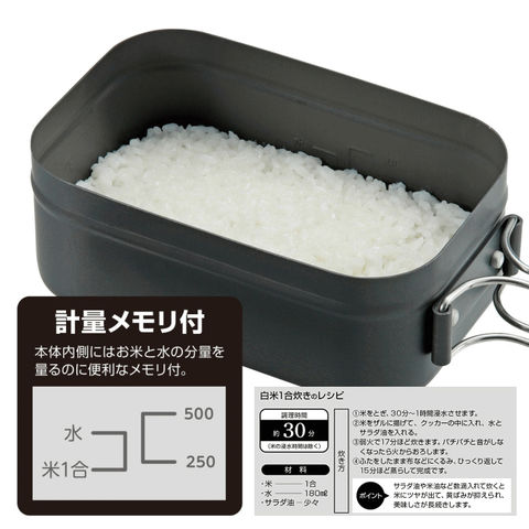 | 【ライスクッカー】満水容量(約)/1.0L 【固形燃料】使用方法はパッケージに書いてあります。使用上の注意をよく読んでご使用ください。 |