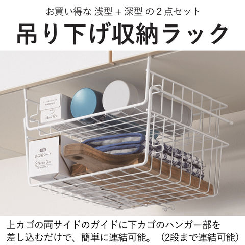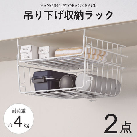 吊り下げ 収納 かご 吊り下げ棚 2段 吊り下げ ラック 吊り戸棚下 ラック 吊り戸棚 棚下収納 棚下ラック 棚下ハンガー収納 戸棚下収納ラック キッチン収納 台所 シンプル コンパクト 一人暮らし 単身赴任 新生活