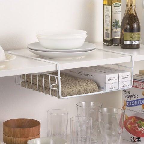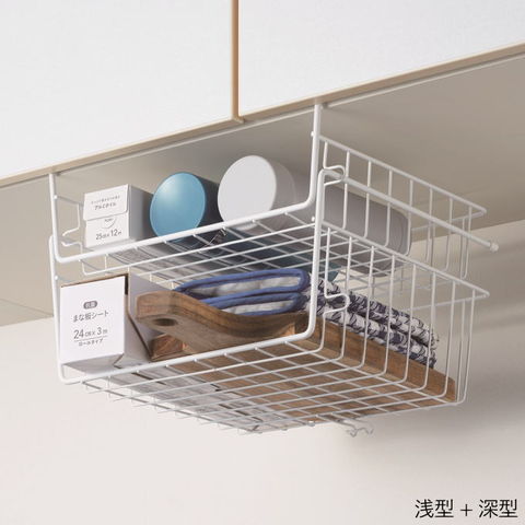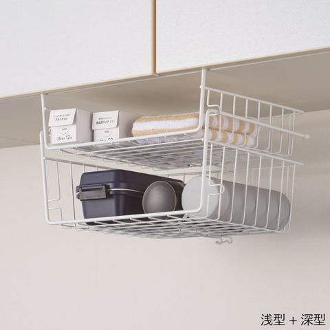 | 吊り戸棚の下を有効活用!吊り下げ戸棚の棚板に差し込むだけで簡単に取り付けられます。 よく使うキッチンペーパー・ラップ・布巾・調理道具・水筒など、すぐに手の届くところにすっきり収納できます。 お弁当箱・保存容器・キャニスター・スパイス・パスタ・調理器具・調理道具などのストック収納にも。 2段まで連結できるので、上カゴの両サイドのガイドに、下カゴのハンガー部を差し込むだけで簡単に連結できます。 ■連結方法 1.上カゴの両サイドのガイドに、下カゴのハンガー部を奥まで差し込みます。 2.下カゴが上カゴのフックにはまるようにしっかり差し込みセットします。 |