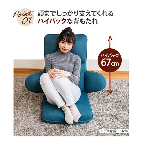 | 【抱きしめられているようなホールド感】 頭・背・肘・脚部に14段階の角度調節ギア搭載で首への負荷を徹底サポート! 首へのストレスが軽減され、長時間座っても快適な時間を過ごせます。 ローテーブルでの勉強や仕事のほか、読書やゲームなどのリラックスタイムにもおすすめです♪ 【座面は低反発素材で座り心地重視】 からだを包み込むような心地良さの低反発ウレタンを使用。 ボリュームたっぷりのクッションは立体的にからだにフィット。 座面が沈み込まないクッション性抜群で首までしっかりサポート&おしりも安定して快適です。 【高機能でインテリアにもなじむシンプルなデザイン】 アームレストがしっかりと肘を支えてくれるからうつむき姿勢にならない! 首を伸ばした正しい姿勢をサポートしてくれるので、テレビや読書姿勢がとっても楽になります。 また飽きのこないカラーとシンプルデザインはゆとりの空間が生まれお部屋を広く感じさせてくれます。 【ハイバック&全身座れるロングタイプ】 座面から背もたれトップまでの長さは67cmで頭をしっかりとあずける事が出来るうれしいハイバック。 ヘッドレスト(頭部)、バックレスト(背もたれ)、フットレスト、アームレストはそれぞれ14段リクライニングが可能。 何通りもの角度に調節することができるからあなたにぴったりの位置がきっと見つかります。 【製品仕様】 サイズ:幅59-100×奥行60-160×高さ17-77cm 座面高14cm / 重量12.1kg 生地:ポリエステル100% クッション材:ウレタンフォーム 構造材:スチール(鋼) 機能:バックレストフリーロック18段ギア 、ヘッドレスト14段ギア、フットレスト14段x2か所、アームレスト14段 支えてくれるポイントが多いから ゆったり快適なハピットのロングタイプ 【他には無い! ハピットの動くアームレスト機能】 14段階で細かく角度を調節出来るアームレストはあなたにぴったりの肘置きに。 アームレストは座面に取り付けられているのが一般的ですが、ハピットは背に付いています。 その為、肘をピンポイントで支える事が出来、スマホ姿勢の腕がとっても楽に。 現代人のライフスタイルにぴったりの新しい機能です。 疲れの溜まりやすい「首」「腕」「足」を14段ギアでゆったりと支えてくれるから、長時間座っても快適つづく。 アームレストがしっかりと肘を支えてくれるからうつむき姿勢にならない! 首を伸ばした正しい姿勢をサポートしてくれます。 さらにヘッドレストは14段階で細かく位置を調整出来るからあなたにぴったりの位置がきっと見つかる。 首への負荷を軽減してくれます。 大好きな読書も長時間だと腕がだるくなっちゃいます。 ハピットならアームレストが腕を支えてくれるから、読書もスマホもゲームも快適です。 また短めの肘は椅子の出入りの邪魔にならず、ストレス無くご使用頂けます。 足を伸ばして座れるから脱力してリラックス出来る。 また座面には2か所のリクライニングポイントがあり、角度を調節することで疲れやすい足をゆったりと持ち上げて休ませてくれます。 座面から背もたれトップまでの長さは67cm。 頭をしっかりと背もたれにあずける事が出来るうれしいハイバック。 頭が楽だと長時間座っても疲れません。 体圧分散効果のある低反発ウレタンを座面のクッション材に採用。 じわっとゆっくり沈み込む感覚の低反発ウレタンは、長時間座った時のお尻への負担を軽減してくれます。 少しでも長く使ってほしいから。 ハピットは厳選したウレタンをたっぷりとクッション材に使用しています。 だからふっかふかのクッションが体を包み込むように支えてくれるのです。 背もたれはフラットにしなくても角度調節可能な新ギアを搭載。 止めたい角度まで倒したら少し戻すだけで簡単ロック。 壁際の狭いスペースでも調節が可能です。 ゆったり寛げる座椅子は欲しいけど、場所をとるのがちょっと。。という方は多いと思います。 ハピットは大きいのに背を畳めるのでこんなにコンパクトに! 使わない時も邪魔にならないからいいですね。 フルフラットに伸ばせばまるでベッドのように。 ヘッドを少し起こして枕にすれば快適に眠る事も出来ます。 |