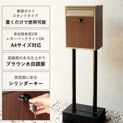 ポスト 置き型 スタンド アンティーク 郵便ポスト スタンドタイプ 家庭用 鍵付き 大型 スタンドポスト おしゃれ 工事不要 穴あけ不要 荷物収納 レターパック対応 宅配 木目 北欧 かわいい シンプル スチール 郵便受け 置き型ポスト メールボックス 新聞受け スタンド式 大容量 ポスト付き 鍵付 一戸建て用 戸建て 屋外 スタンド ポスト 門柱 置く だけ 埋め込み 据え置き 据置型 不在受取 テレワーク 在宅勤務 非対面