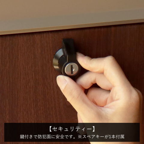 鍵付きなので防犯面に安心です。※スペアキーが1本付属。