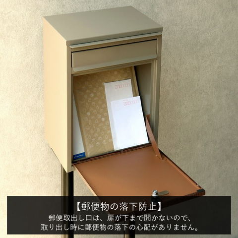 郵便取出口は、扉のストッパーがついており、扉が下まで倒れずに郵便物の取出しを行えます。