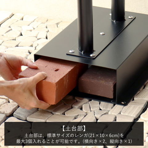 土台部は、標準サイズのレンガ(21×10×6cm)を最大3個入れることが可能です(横向き×2、縦向き×1)。