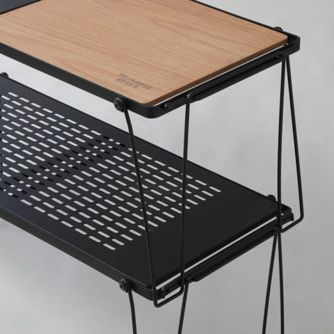 品番:K02H-3-140-STR-9035WD※品名:アウトドアテーブル キャンプテーブル アウトドアラック フィールドラック 木製 ソロキャンプ テーブル ソロ キャンプ アウトドア ロー ミニ テーブル 棚 コンパクト 調理台 ラック アイアン 焚き火台