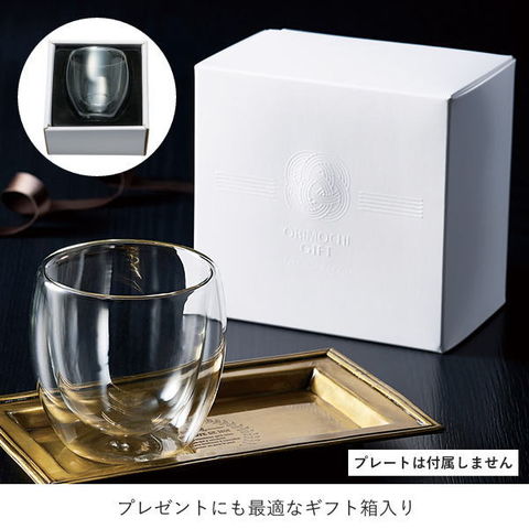 | 保温性に優れたグラス 耐熱グラス 立体的に水引をデザインした高級感あるギフトボックス ダブルウォールグラスの特徴 保温性に優れているので飲み頃温度が長く保たれます。 暖かい飲み物を注いでもグラスの外側は熱くなりすぎません。 冷たい飲み物を注いでも結露せずテーブルを濡らしません。 |