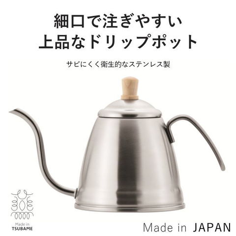 | Made in TSUBAME SIMPLE ITEMS PARTRE(パルトール) 細口で注ぎやすい。シンプルで上品なドリップポット。サビにくく衛生的なステンレス製。 |