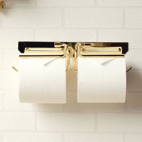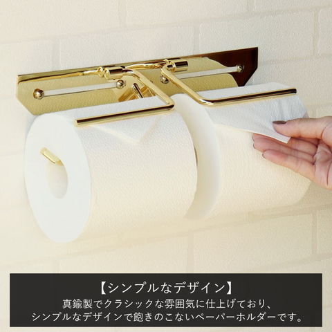 品番:M02-1-60-PH-032※品名:真鍮製 トイレットペーパーホルダー 真鍮 ゴールド ダブル 2連 二連 ペーパーホルダー カバー ワイド ダブルタイプ ワイドタイプ 二連タイプ おしゃれ 北欧 アイアン アンティーク 金 コンパクト シンプル 高級感 賃貸