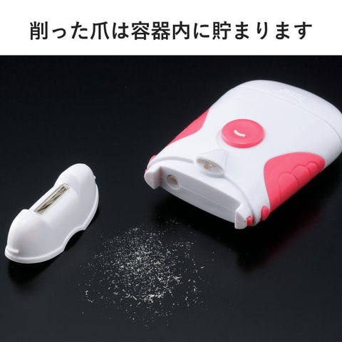 | カットするのではなく、削るから仕上がりキレイ! 爪に押し当てるだけ。硬い爪もラクラク処理! 電動式なので、簡単に爪を削ることができます。 触っても安全です。皮膚に触れても大丈夫! 削った爪は容器内に入るから、掃除もラクラク! 飛び散った爪の掃除をしなくても大丈夫! ヘッド部分はまるごと水洗い! 水洗いできるので、衛生的です。お掃除ブラシ付きです。 LEDライト付き! LEDライトで暗くても指先が見やすく、爪先を照らして削ることができます。 |