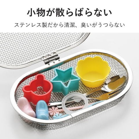 | 清潔で丈夫な18-8ステンレス製。食洗器で洗いにくかった小物が洗える。ステンレス製だから、清潔・ニオイ移りが少ない。 |