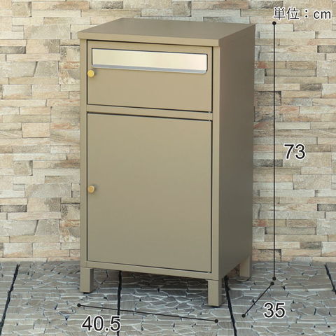 | 幅40.5×奥行35×高さ73(アジャスター込みサイズ)cm 【上段投函口】幅33×高さ3.5cm 【上段取出口】幅35.5×奥行31.2×高さ17.0cm 【下段宅配ボックス内寸】幅32.1×奥行31.0×高さ38.0cm |