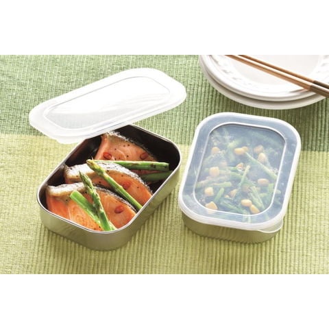 | 食品を小分けにして保存できるステンレス製の容器。 冷蔵庫にコンパクト保存。 |