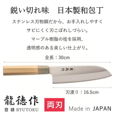 龍徳作 八角柄 和包丁 三徳包丁の詳細