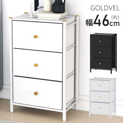| ラグジュアリーでエレガントなGOLDVELチェストシリーズ。 スチールのフレームとファブリックの引き出しを組み合わせたチェストです。 フェイクレザーを使用した前面引き出しとステッチのアクセント、さらに取っ手とトップアクセサリーにゴールドカラーを使用することで優雅で高級感ある仕上がりとなりました。 木調天板はキズが付きにくいメラミン加工でディスプレイスペースとしても活用できます。 引き出しは取り外しが可能でお掃除が簡単です。 |