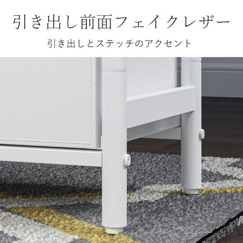 本体・フレーム・補強ワイヤー/スチール(粉体塗装)、天板/合成樹脂化粧繊維版(メラミン)、引出 芯材/MDF・厚紙、引出 生地/ポリウレタン・ポリプロピレン、取っ手・トップアクセサリー/ポリプロピレン