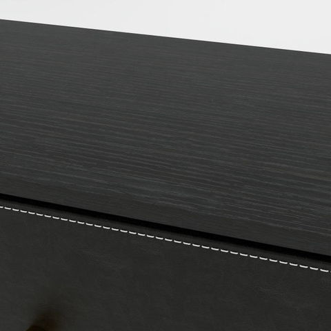 フェイクレザーを使用した前面引き出しとステッチのアクセント、さらに取っ手とトップアクセサリーにゴールドカラーを使用することで優雅で高級感ある仕上がりとなりました。