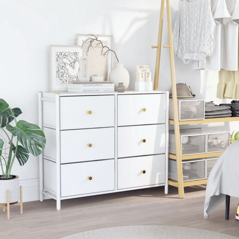 スチールのフレームとファブリックの引き出しを組み合わせたチェストです。