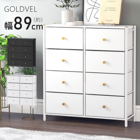 | ラグジュアリーでエレガントなGOLDVELチェストシリーズ。 スチールのフレームとファブリックの引き出しを組み合わせたチェストです。 フェイクレザーを使用した前面引き出しとステッチのアクセント、さらに取っ手とトップアクセサリーにゴールドカラーを使用することで優雅で高級感ある仕上がりとなりました。 木調天板はキズが付きにくいメラミン加工でディスプレイスペースとしても活用できます。 引き出しは取り外しが可能でお掃除が簡単です。 |