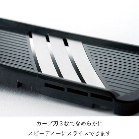 | カーブ3枚刃でなめらかにスピーディにスライスできます。 3倍のスピードでスライスできます。 ふわシャキキャベツが簡単にできます。 |