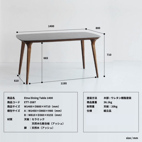 | 天板:セラミック、天然木化粧合板(アッシュ) 木部:天然木(アッシュ) 木部:ウレタン樹脂塗装 |