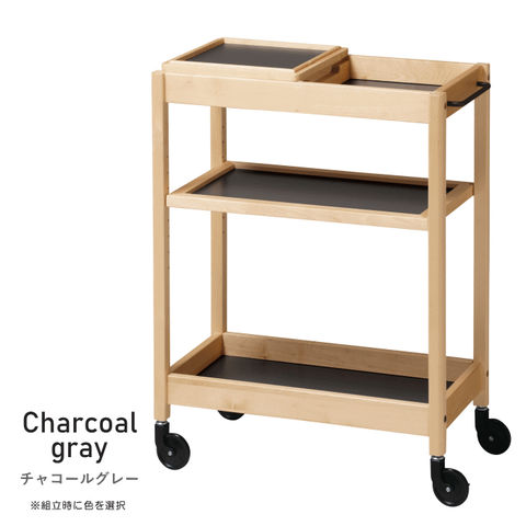 | TORE シーンを選ばないマルチワゴン 特徴的なキャスターやハンドルがさりげなく存在感を放つマルチワゴン。棚板はリバーシブル仕様。きめの細かい樺材の木肌に映えるチャコールグレーと、ライトグレーの2色の棚板を選んで組み立てます。キッチンやリビング、ソファサイドなど様々なシーンで活躍します。 棚板は全てリバーシブル。チャコールグレーとライトグレーを組立時にお選びいただけます。 中棚は固定ピンを使用して高さの調節が可能。 ストッパー付き大径キャスターを採用。 |