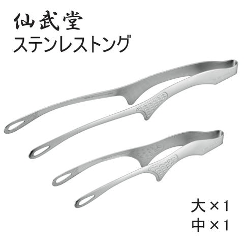 品番:H01-1-60-AST-001-AST-002※品名:【ネコポス発送】焼肉トング ステンレス トング セット (大・中)仙武堂 焼肉トング 料理用 揚げ物トング 足付き 自立式 衛生的 日本製 国産品 ステンレス製 細い 焼肉 用 トング 万能トング 菜箸トング 頑丈 先細