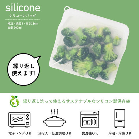 【メール便発送】シリコン 保存袋 900ml 単品 コンパクト シリコンバッグ 冷蔵 冷凍 保存 バッグ 袋 電子レンジ 食洗機 レンジ 対応 保存容器 耐熱容器 シリコン容器 食品 野菜 作り置き 調理器具