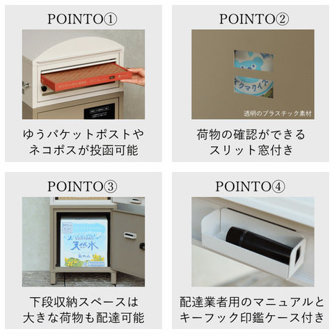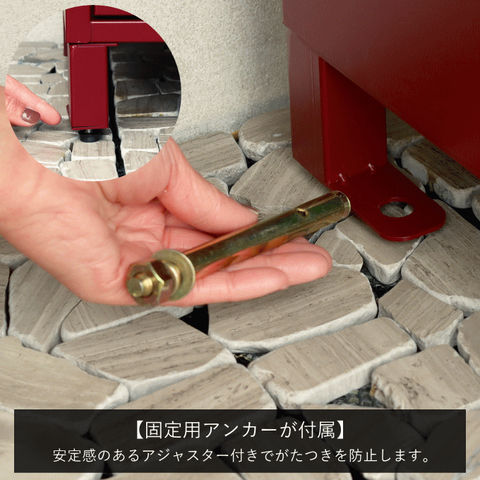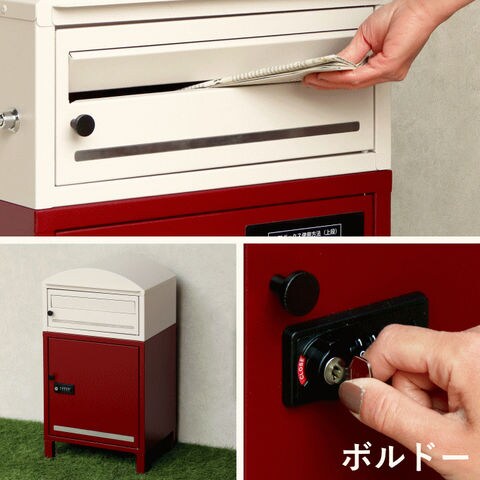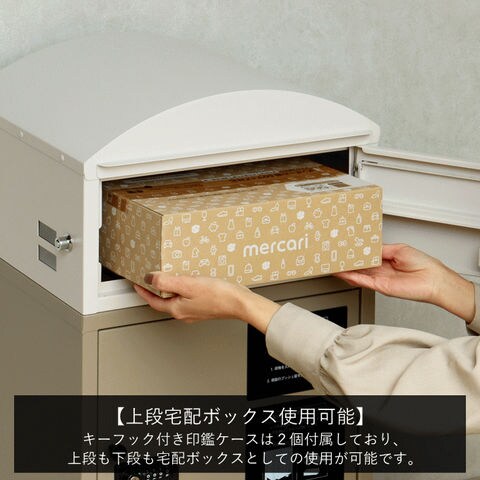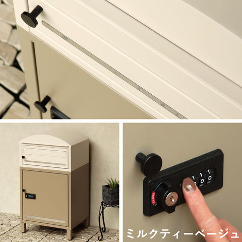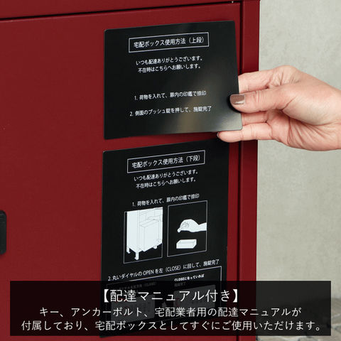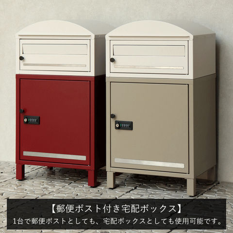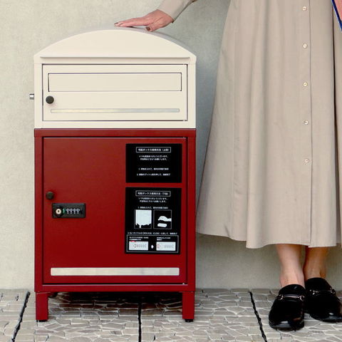 | 郵便物、宅配物どちらも不在時に、荷物を受け取れるポスト付き宅配ボックス又はポスト一体型宅配ボックス。忙しいあなたや、配達の方にも優しい商品です。 ダイヤルロックとシリンダー錠(ダイヤル解錠番号が分からなくなった際の緊急用)の組み合わせタイプの鍵を使用しており防犯性が高いです。 高級感のある郵便受けが個性ある玄関を演出する宅配BOXです。 【セキュリティー】 上段は、プッシュキーで簡単に鍵の開閉が可能で、防犯面にも安心です。また、スペアキーが1本付属しております。 下段のダイヤルロックは、鍵を施錠した際、鍵を解錠した際にダイヤル番号が「0000」にリセットされ、設定したダイヤル番号の漏洩の心配がありません。 【上段宅配ボックス使用可】 扉側に捺印用の印鑑ホルダーが2個付属しており、上段も宅配ボックスとしての使用が可能です。マグネット式で任意の場所に取り付けることが可能です。※印鑑はご自身でご用意ください。 上段の投函口は大きなサイズ設計で、ネコポスやゆうパケットポストが投函可能です。 【配達マニュアル付き】 キー(2段すべて)、アンカーボルト、キーフック付印鑑ケース、宅配業者用の配達マニュアル(マグネット式でお好きな場所に貼付け可)が付属しており、お客様で追加でご用意 頂くものは特に必要なく、すぐにご使用頂けます。 【デザイン】 上段をクリームカラー、下段をボルドーカラーの仕上がりと、上段をクリームカラー、下段をミルクティーベージュの仕上がりの2色展開になります。 【錆びにくい加工】 ガルバナイズド処理を施している為、錆の発生がしにくい仕様となっております。 ※防水加工は施しておりませんので、軒下や屋根がある場所への設置を推奨致します。 【アンカーボルト付属】 脚部に地面固定用のアンカーボルト穴があり、地面と商品を固定することも可能です。 |