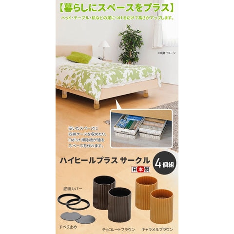 | 暮らしにスペースをプラス。 ベッド・テーブル・机などの足につけるだけで高さがアップします。 従来品よりも強度の強い材料を使用しており、耐久性がアップしました。 空いたスペースに収納ケースを収めたり、ロボット掃除機が通るスペースを作れます。 上下を裏返すことで、2段階の高さ調整が可能です。(4cmと7cmの2段階) 振動や脚の動きを抑えるスベリ止め付。 | |