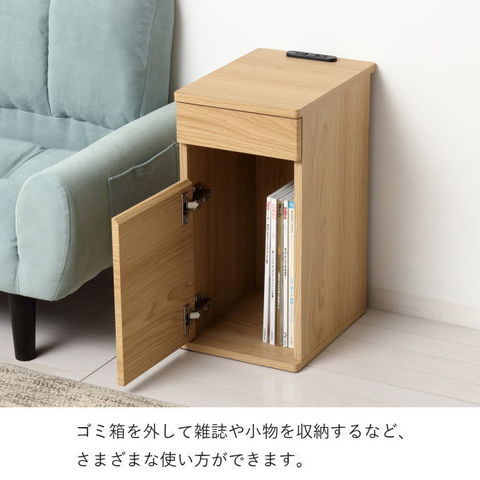 品番:K01-01-82315※品名:ゴミ箱 おしゃれ スリム ペール付き ナイトテーブル コンセント付き ダスト ペール 上 ラック ごみ箱隠す収納 ごみ箱 収納 引き出し ダストボックス サイドテーブル ごみストッカー 屋内 ごみ箱上ラック ごみ箱ラック
