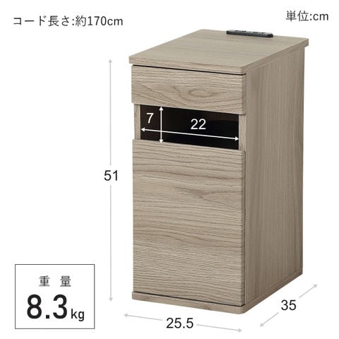 | 1500W2口コンセント付き。カバー付きでホコリが入りにくい仕様です。 角を丸くしているので高級感があり、お子様のいるご家庭でも安心です。 引き出しは強度が強く、耐久性に優れる箱組仕様です。スライドレールでスムーズ引き出せます。 ごみ箱を外して雑誌や小物を収納するなど様々な使い方ができます。 扉はソフトクローズヒンジを使用していますのでゆっくりと締まります。 コードがスムーズに通せるよう壁との間に約2.5cmのすき間を設けています。 背面化粧仕上げです。 床のキズを防止するクッションシール付きです。 ソファサイドやベッドサイドなど様々な場所でお使いいただけます。 |
