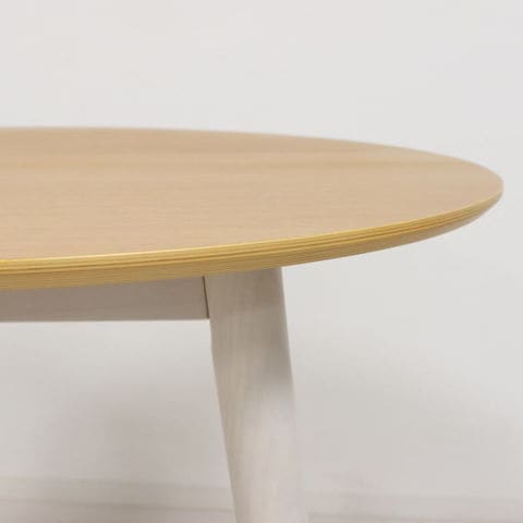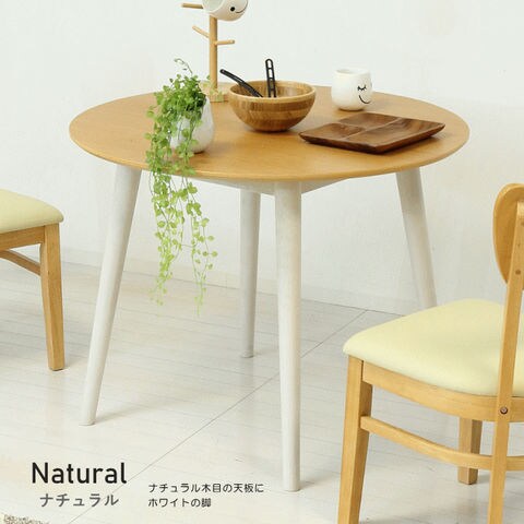 | ダイニングをおしゃれでくつろぎの空間に演出するダイニングシリーズ 【脚裏】テーブル・チェア共に床への傷を防止するシール付きです。 【円形】コミュニケーションがとりやすくデザイン性の高い円形テーブル。圧迫感がなく柔らかい印象です。また、角が無いので小さなお子様にも安心です。 【素材】天板は木目が美しく、傷がつきにくい天然木突板を使用しています。 【脚】「八の字」型のかわいい丸脚、天然木を使用しています。 【コンパクト】天板直径90cmと小さ目で2~3人での使用にちょうど良いサイズです。 【簡単組立】天板部分に脚を取り付けるだけで簡単に完成します。工具付きです。 【背もたれ】背もたれの傾斜と緩やかなカーブが、背中を柔らかく包み込み支えます。 【座面】お手入れが簡単な合成皮革なので、汚れをサッとふき取れます。 【座面高さ】座面高約43.5cmと少し高めで男性でも使いやすい高さです。 |