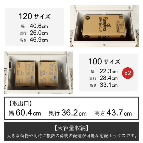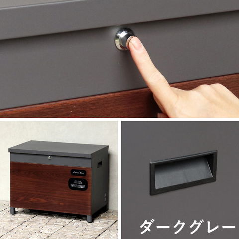 | 屋外物置としても活躍する宅配物を不在時に、荷物を受け取れるベンチ型宅配ボックス。忙しいあなたや、配達の方にも優しい商品です。 高級感のある郵便受けが個性ある玄関を演出する宅配BOXです。 【セキュリティー】 鍵は、プッシュキーで簡単に鍵の開閉が可能で、防犯面にも安心です。また、スペアキーが1本付属しております。 閉じ込め防止機能付きで鍵は内側から閉じ込め防止レバーで解錠可能となります。万が一、宅配ボックス内に閉じ込められても安心です。 【複数投函可能】 取出口サイズが約W60.4×D36.2×H43.7cmと非常に広く、大きな荷物や同時に複数の荷物の配達が可能な宅配ボックスです。 【多用途使用可能】 収納ボックスとしてだけでなく、子供の遊び道具、アウトドア用品、灯油缶、洗車用品、ごみの保管など、多用途でのご使用が可能な商品です。 【配達マニュアル付き】 キー、アンカーボルト、キーフック付印鑑ケース、宅配業者用の配達マニュアルが付属しており、お客様で追加でご用意頂くものは特に必要なく、すぐにご使用頂けます。 【デザイン】 左右側面にハンドルが付いており、持ち運び時に便利です。 正面下部にスリット窓付きで、扉を開けなくても荷物の確認が可能です。 正面部は木目調仕上げで、特徴のあるデザインとなっております。 濃いグレーのダークグレーとブラウン木目の組み合わせと、お家の外壁に合わせやすいグレージュ色とホワイト木目の組み合わせからお選び頂けます。 【錆びにくい加工】 ガルバナイズド処理を施している為、錆の発生がしにくい仕様となっております。 ※防水加工は施しておりませんので、軒下や屋根がある場所への設置を推奨致します。 【アンカーボルト付属】 脚部に地面固定用のアンカーボルト穴があり、地面と商品を固定することも可能です。 |