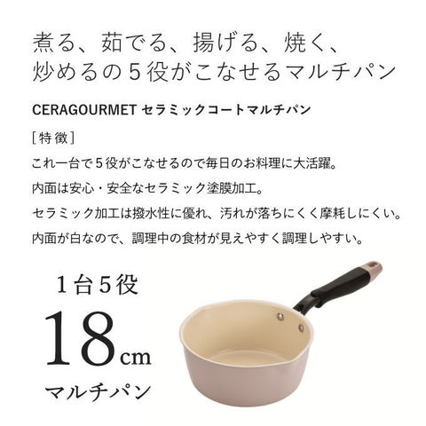| マルチパン 18cm 1台 5役 深型 鍋 フライパン 片手鍋 ih ガス火 IH対応 18センチ 深い 炒め鍋 いため鍋 中華鍋 大型 大容量 大家族 大人数 セラミック 焦げ付きにくい アルミ鍋 ナベ なべ 軽量 アルミ 軽い ソースパン マルチポット コンパクト キッチンツール 調理器具 お得 お試し 調理道具 新生活 卓上 シンプル キッチン雑貨 キッチン小物 キッチングッズ 一人暮らし 単身赴任 引っ越し おしゃれ ギフト 贈り物 プレゼント キッチン ツール おしゃれ 調理 料理 |