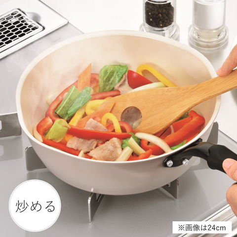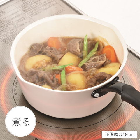 | 材質:本体/アルミニウム合金(底厚2.6mm)、はり底/ステンレス鋼 表面加工:内面/セラミック塗膜加工、外面/焼付塗装 |