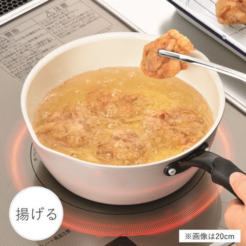 | CERACOURMET セラグルメ 煮る、茹でる、揚げる、焼く、炒めるの5役がこなせるマルチパン ・これ一台で5役がこなせるので毎日のお料理に大活躍。 ・内面は安心・安全なセラミック塗膜加工。 ・セラミック加工は撥水性に優れ、汚れが落ちやすく摩耗しにくい。 ・内面が白なので、調理中の食材が見えやすく調理しやすい。 ガス火はもちろん、200VのIHクッキングヒーターやハロゲンヒーターなどオール熱源に対応 |