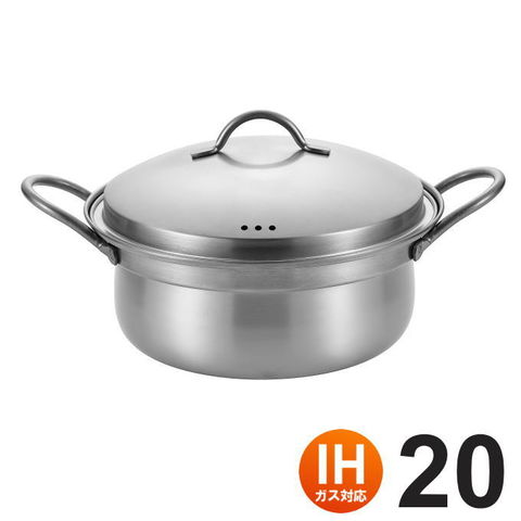ステンレス しゃぶしゃぶ鍋 日本製 両手鍋 深型 20cm 2~3人用 ih ガス 国産 深い 卓上鍋 火鍋 調理鍋 万能鍋 土鍋風鍋 すきやき鍋 なべ 20センチ ih対応 軽量 軽い 卓上 鍋 雑炊 うどん 煮物