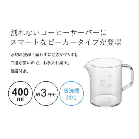 品番:H01-3-60-TW-3765※品名:耐熱 ビーカー サーバー プラスチック 400ml 3杯分 日本製 プラスチック製 コーヒー コップ カップ おしゃれ 洗いやすい 食洗機 対応 かわいい 割れない われない 透明 トライタン tritan 軽量 軽い お茶 紅茶 珈琲