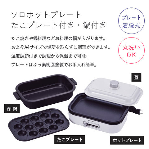 品番:H01-3-100-SHP-08-TP※品名:ホットプレート たこ焼きプレート付き 深鍋 丸洗い OK 着脱式 グリルプレート たこ焼き器 深型 鍋 ミニ 焼肉プレート たこ焼き器付き たこ焼き プレート たこ焼き機 小さい ミニサイズ 油はね おしゃれ 一人用 2人用