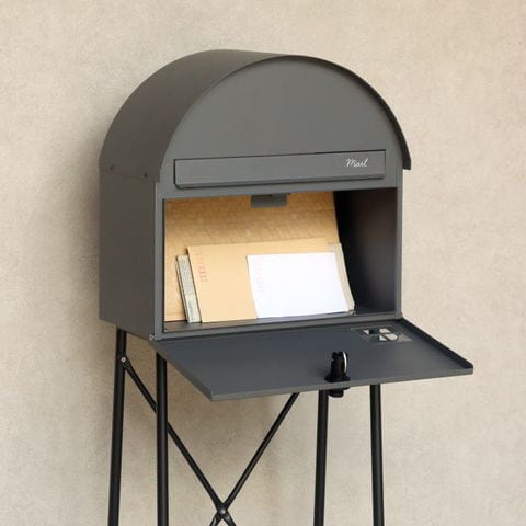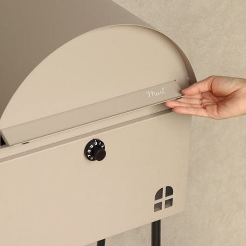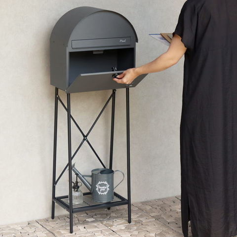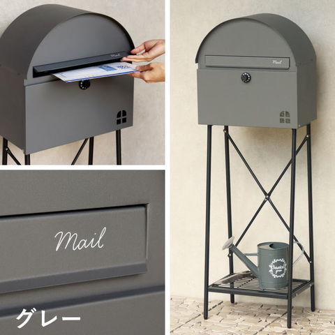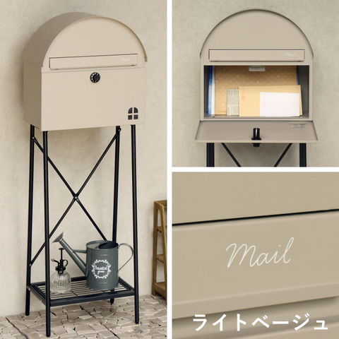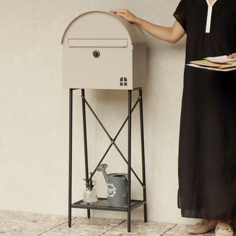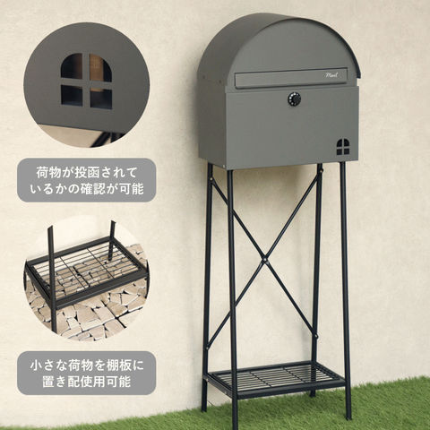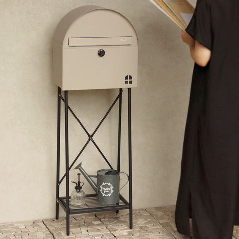 | 【スタンドタイプ】 置くだけで使用可能なスタンド式の置き型 ポスト。壁掛けポストとは異なり面倒な施工の手間がかかりません。 【投函可能目安サイズ】 茶封筒角型2号やレターパックライトが投函可能です。 【セキュリティー】 ダイヤルロック付きなので防犯面に安心です。※お客様で好きな番号へ変更できません※ 【錆びにくい加工】 ガルバナイズド処理を施している為、錆の発生がしにくい仕様となっております。 ※防水加工は施しておりませんので、軒下や屋根がある場所への設置を推奨致します。 【デザイン】 正面扉にスリット窓が付いているため、扉を開かなくても郵便物が投函されているかの確認が可能です。 投函口には、Mailとシルク印刷が入っており、カジュアルな仕上がりとなっております。 郵便受け本体の天面は、R加工で仕上げており、かわいい印象に仕上がっております。 脚部はアジャスター付で、アジャスターの高さ調整で、設置場所のがたつき防止の役目を果たします。 棚板付きで、小物の装飾やガーデニングアイテムの収納として便利にご使用いただけます。 棚板付きタイプで、小さな荷物であれば、棚板を置き配用としてご使用いただけます。 【カラー】 カラーは、落ち着いた色合いのグレーと上品な仕上がりのライトベージュからお選び頂けます。脚、棚板は、ブラックカラーでの仕上がりとなります。 |