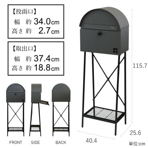 品番:M02-03-160-SDM-091※品名:ポスト 置き型 スタンド アンティーク 郵便ポスト スタンドタイプ 家庭用 スタンドポスト おしゃれ 一戸建て用 戸建て 北欧 置き型ポスト 屋外 スタンド ポスト スタンド式 門柱 置く だけ 据え置き 据置型
